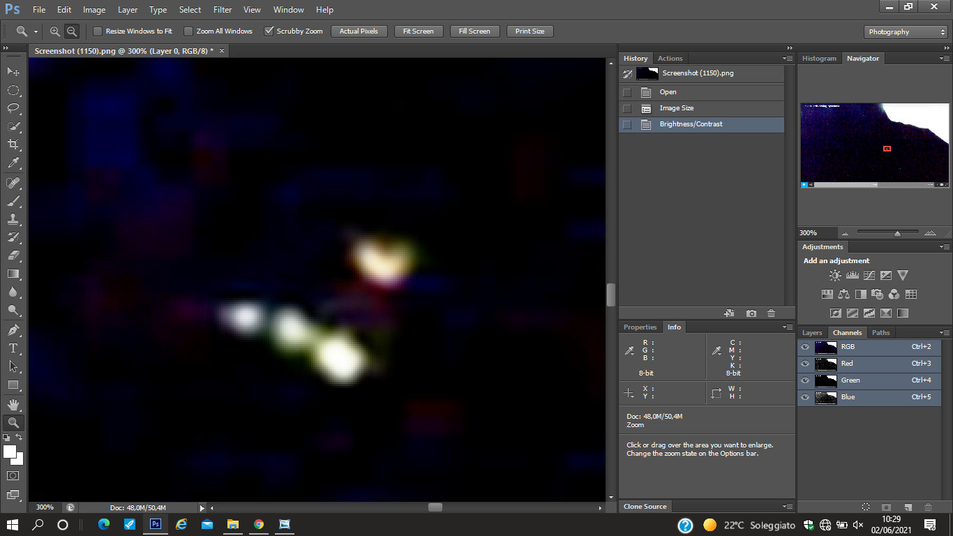 le luci che si vedono sono sostanzialmente nel RGB, troppo poco IR per essere un velivolo in modalità "guida cieca"...e NON sono "luci" di propulsione! cioè dovute all'emissione di IR/UV ed altro PERCHE' sarebbero MOLTO più potenti e sforerebbero nella misurazione INNALZANDO fuori scala i limiti del Red... [:290] [:246]