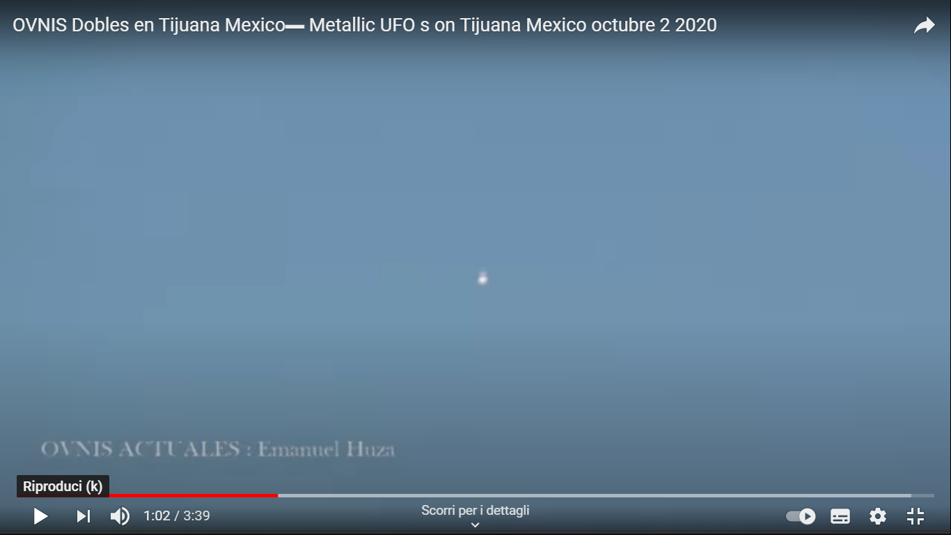 il secondo POTREBBE essere una "testa di grgio", classica, occhi neri, colore grigiastro...ma devo controllare anche questo PERCHE' il "riflesso" che gli gira attorno, quella pallina di luce chiara che si muove attorno "all'ufo", NON basta a dichiarare che il clip non sia manomesso... [:246]