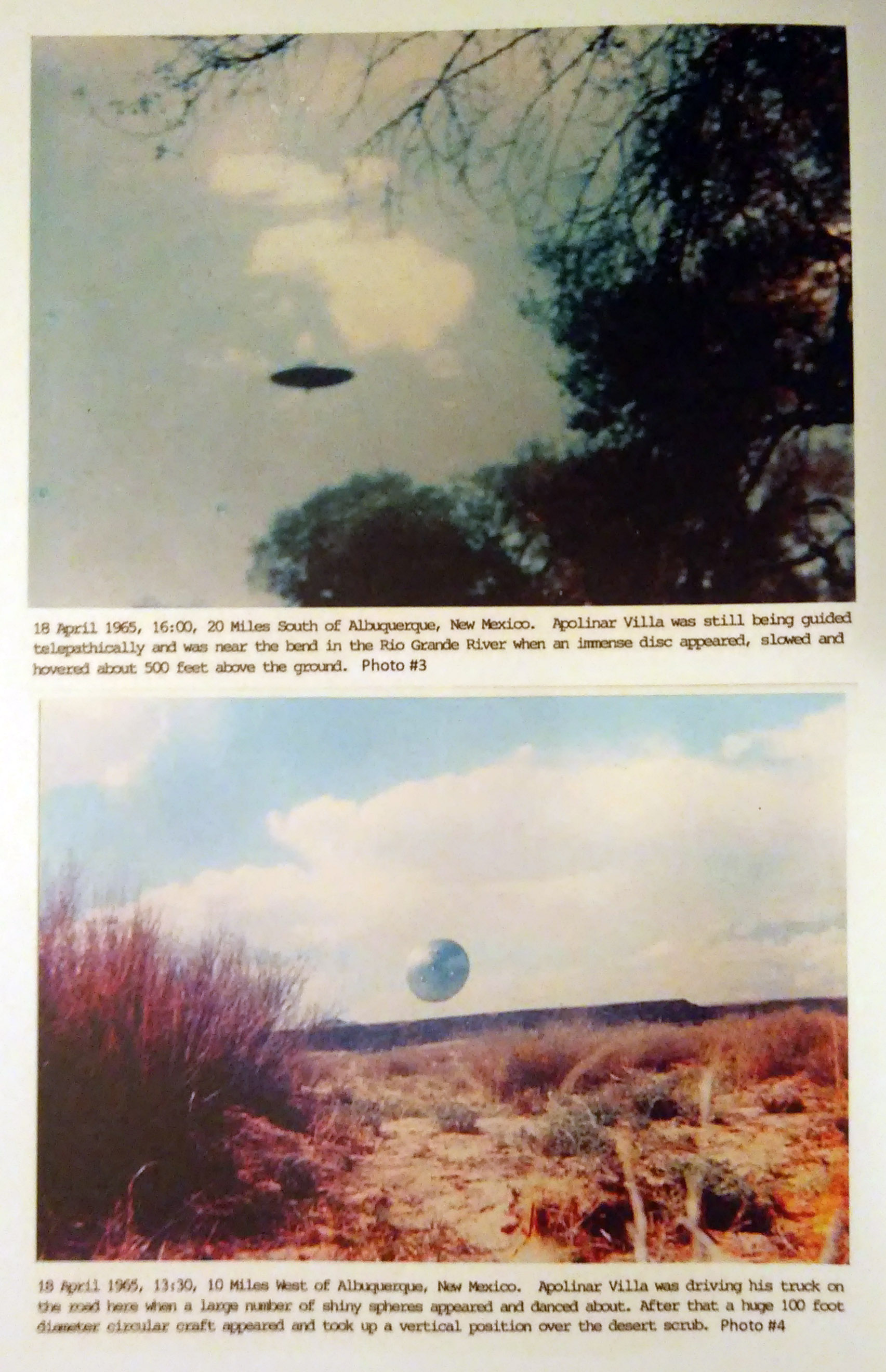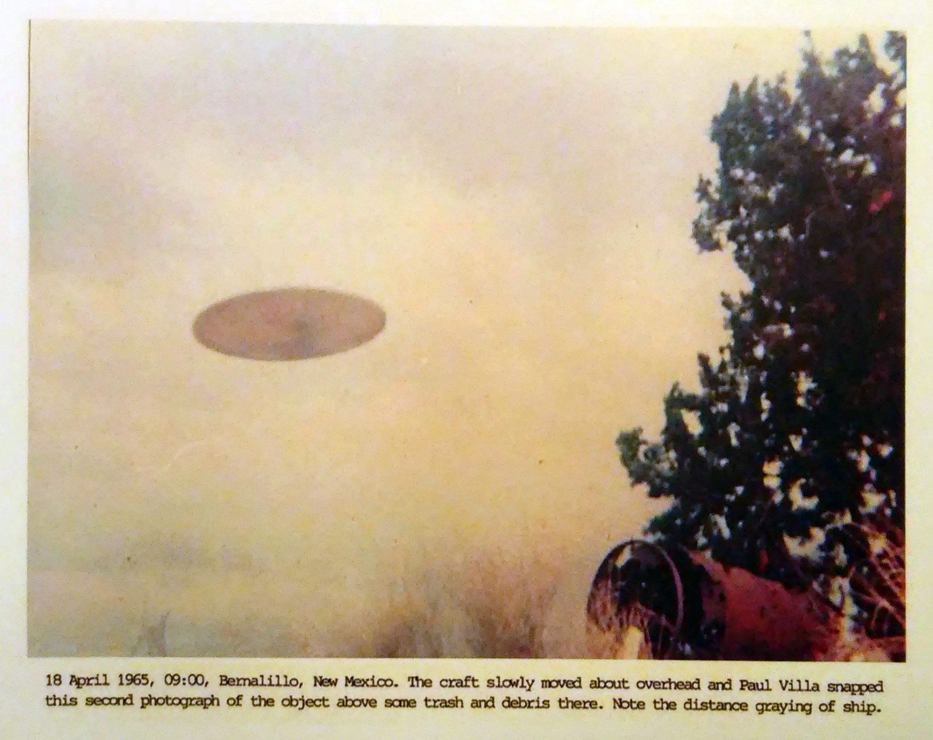 Scrive WS: "Use of models for the smaller craft could not be ruled out, because Paul Villa did actually build a model with two spun metal discs joined at the rims, and with broomstick legs, suggested by his visitors. They had him take it to a deserted location for a demonstration.