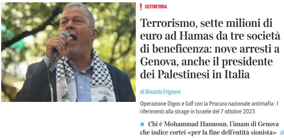 Il Giornale e il Tempo raccontano da tempo i movimenti sospetti del presidente dell'Associazione dei palestinesi in Italia ma fino a questo momento non c'era stato grande seguito ma, anzi, minacce di querele e querele piovute incessantemente, oltre a minacce di morte e gravi intimidazioni.