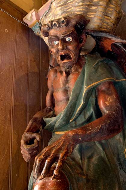 Simbologia della chiesa di Rennes le Château: il demone AsmodeoÉ un ordinario malinteso, dovuto alla più banale superficialità, quello di fraintendere la statua di Asmodeo per un simbolo controverso o addirittura diabolico.
