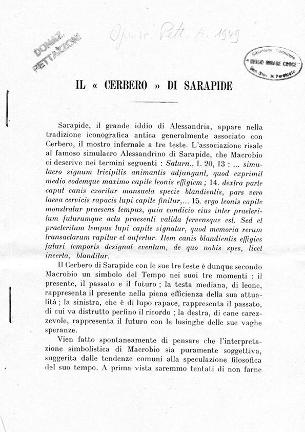 Re: IL CERBERO DI SARAPIDE di Raffaele Pettazzoni