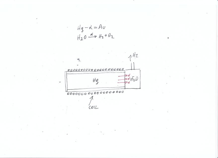 Semplice apparecchio per ricavare oro dal mercurio per espulsione di una particella alfa che viene riutilizzata per la radiolisi dell'acqua: