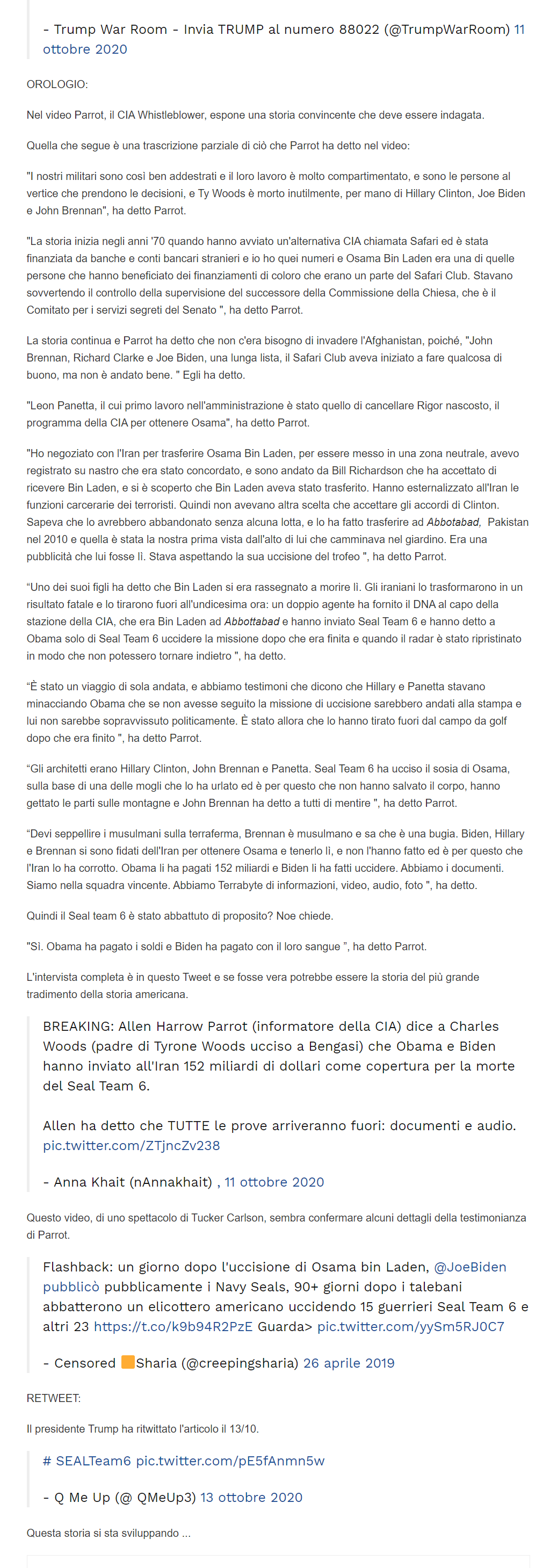 Oggetto del messaggio: Re: Qanon - Il Piano per salvare il Mondo