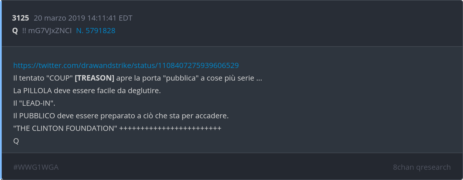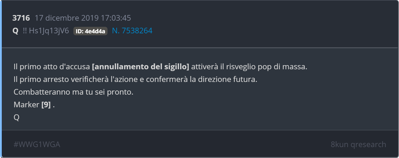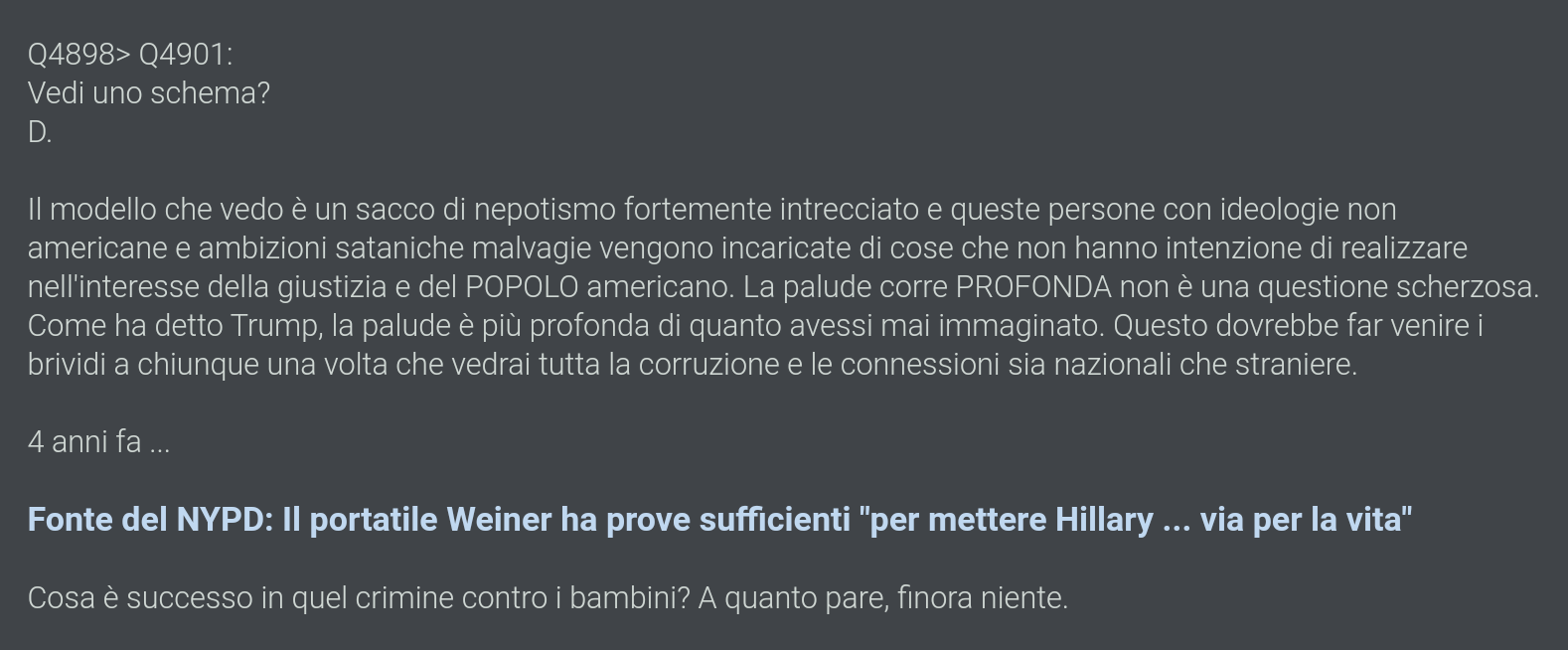 Gli ultimi post di QAnon ci guidano nel capire lo stato di avanzamento di altre importanti inchieste.