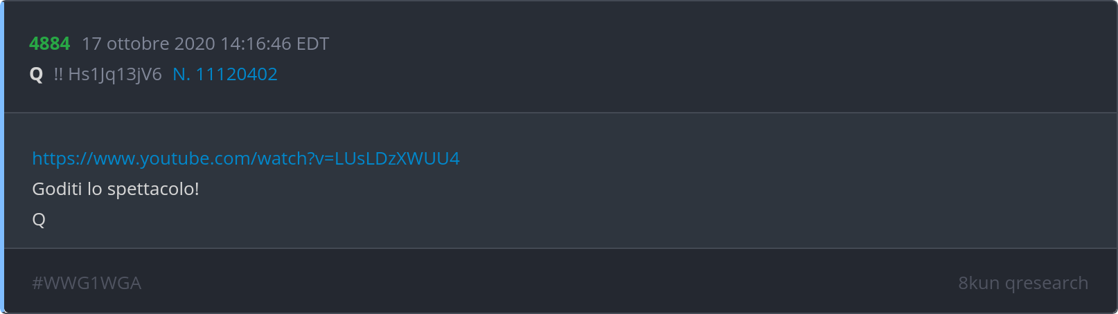 LA PRESIDENZA TRUMP, QANON E "IL GRANDE RISVEGLIO": UN'INTRODUZIONE CONTRO LA CENSURA. PARTE 15 / 1 - 17 ottobre 2020