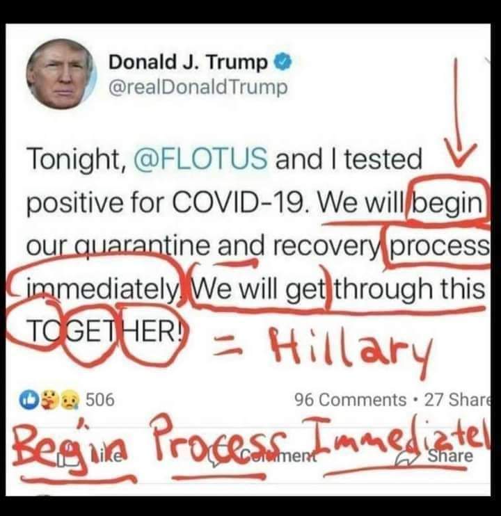 deep state, che voleva far ammalare il presidente per poi rimuoverlo in forza del Venticinquesimo Emendamento della Costituzione: una ricostruzione che, per quanto apparentemente estrema, è perfettamente in linea con le dichiarazioni di alcuni esponenti democratici (tra cui Nancy Pelosi