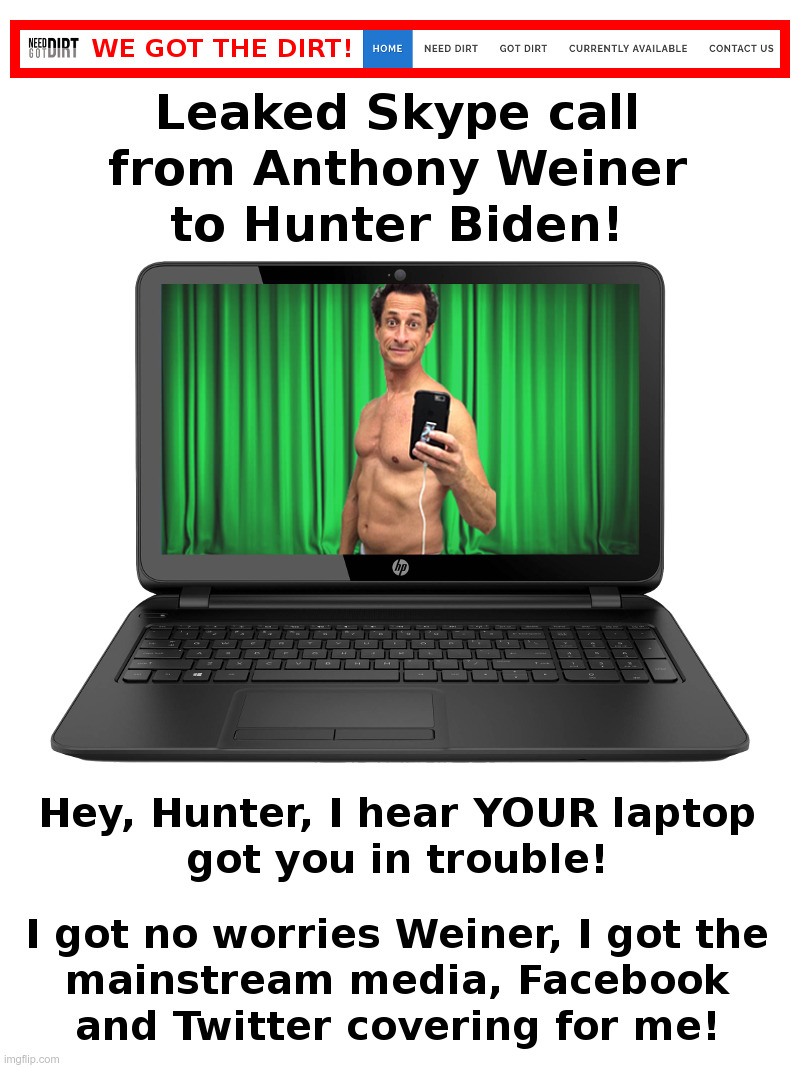 Questo materiale, che è stato divulgato anche da una parte dei media ufficiali (New York Post, Washington Times, Fox News, OAN News, Breitbart, ecc.) avrebbe immediatamente stroncato qualsiasi candidato alla presidenza, se non fosse intervenuta la più rigorosa censura da parte dei mezzi d’informazione collegati al Partito Democratico (la quasi totalità delle TV e dei grandi giornali) e, soprattutto, delle maggiori piattaforme social, che hanno immediatamente bloccato la diffusione delle notizie, pur se provenienti da fonti accreditate
