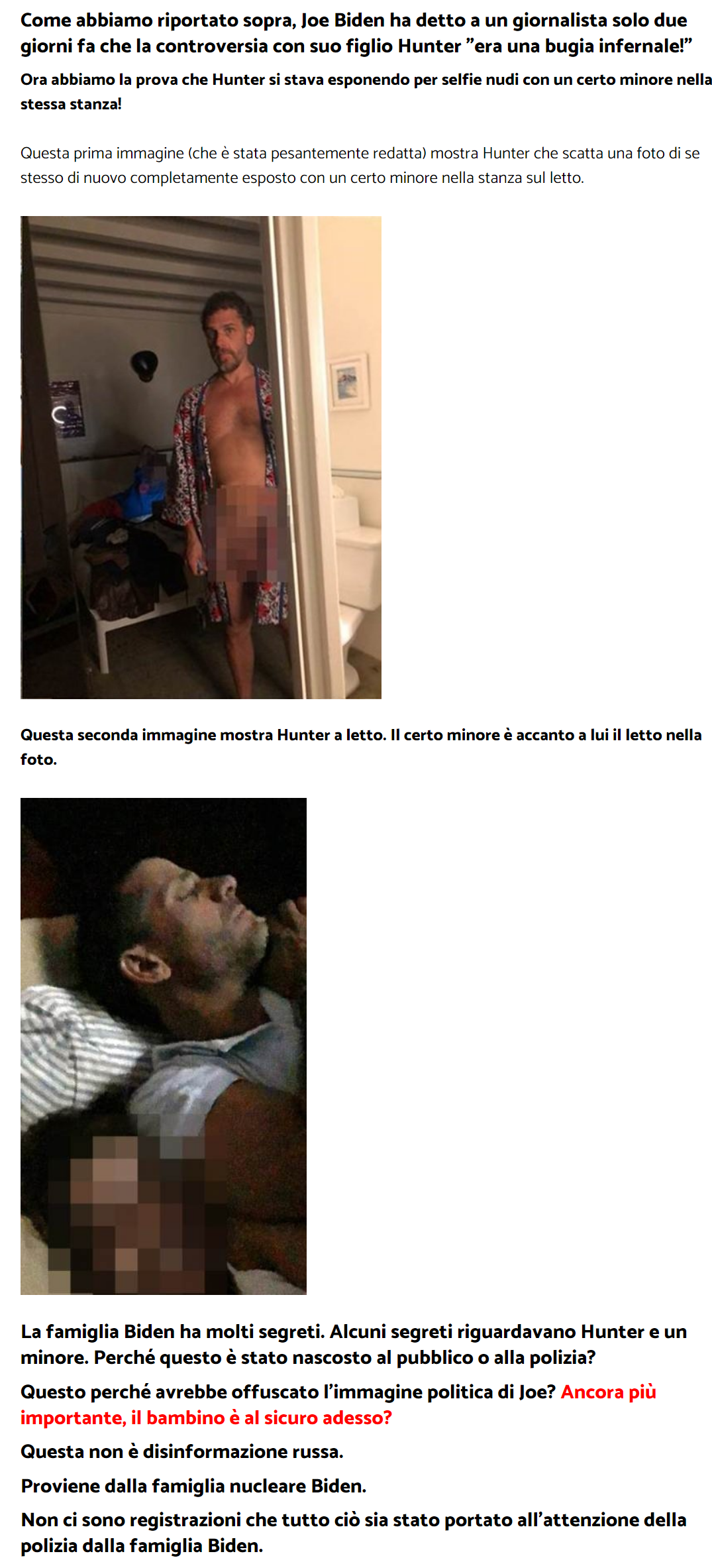 Una delle immagini trapelate sul sito web ha ora alimentato una delle teorie che spinge i legami di Biden a un giro di traffico di bambini.