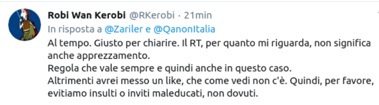 Detto questo, mio malgrado (perchè in questi giorni le notizie sulla questione QAnon potrebbero incalzare ed essere interessanti più che in passato), mi trovo costretto a chiudere il topic, almeno sino al