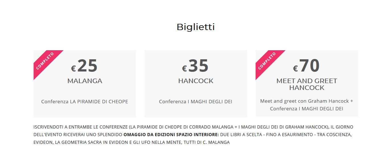 Tanto per essere completi riporto i prezzi della conferenza ... https://www.spaziointeriore.com/ilritornodeglidei/