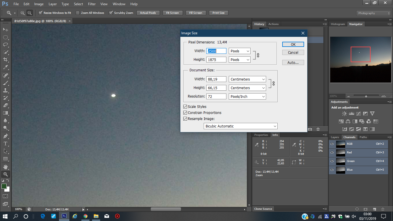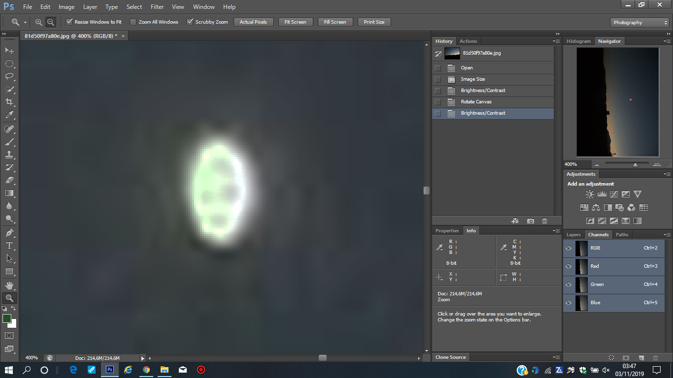 infatti ottengo sull' UFO oggetto d'esame valori di massima sovraesposizione -255 RGB- tipici di schermi deflettori al limite della polarizzazione ma ANCHE tipici di un qualsiasi oggetto stellare -Giove, Venere, Luna- sottoposti a riflettanza OLTRE le normali condizioni di illuminazione e cioè in SOVRAESPOSIZIONE!!!... [:305]