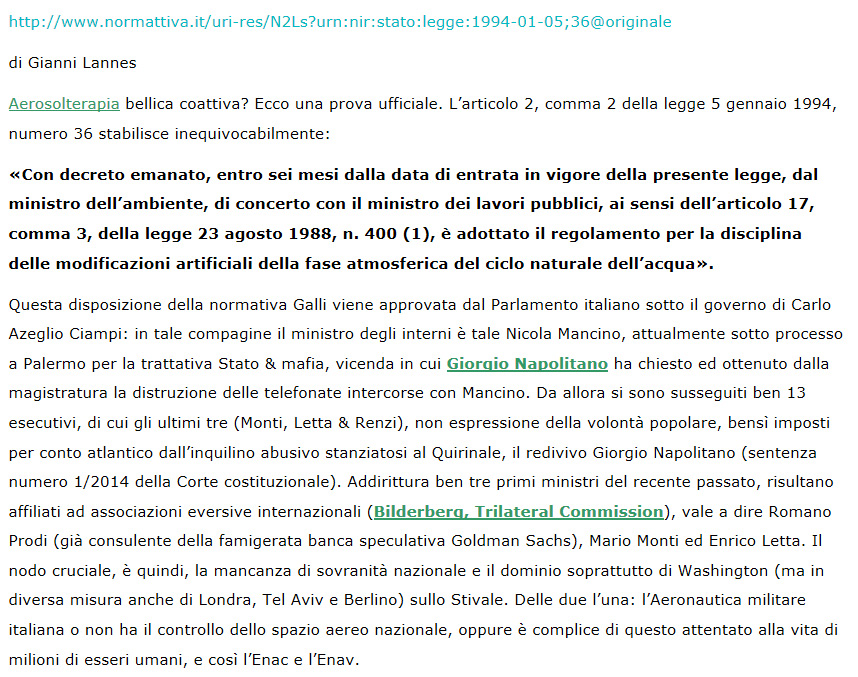 Oggetto del messaggio: Re: Studi e approfondimenti sulle Scie Chimiche