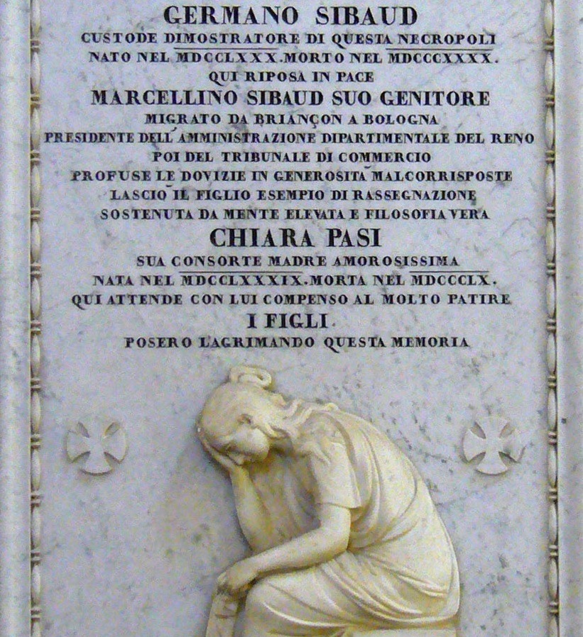 LA LOGGIA MASSONICA "CONCORDIA"Tra il 1831 e il 1848 opera a Bologna la Loggia massonica “Concordia”. Le riunioni si tengono di solito passeggiando a notte inoltrata all'interno della Certosa, con la complicità di alcuni impiegati, quali l'ispettore Carlo Sibaud e il pittore Raffaele Brasa, addetto alle tumulazioni.