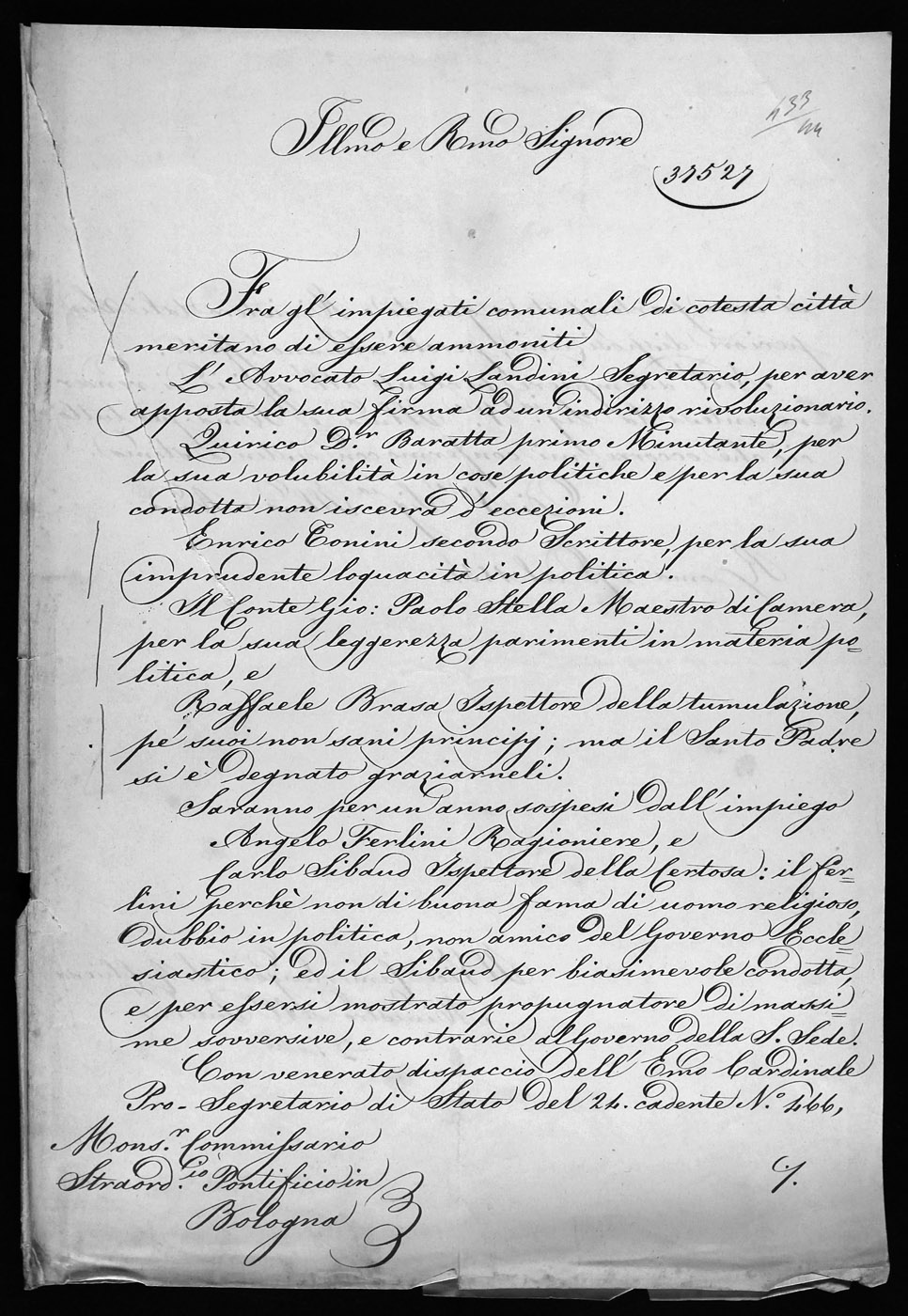 Commissariato straordinario pontificio per le quattro legazioni, Bologna