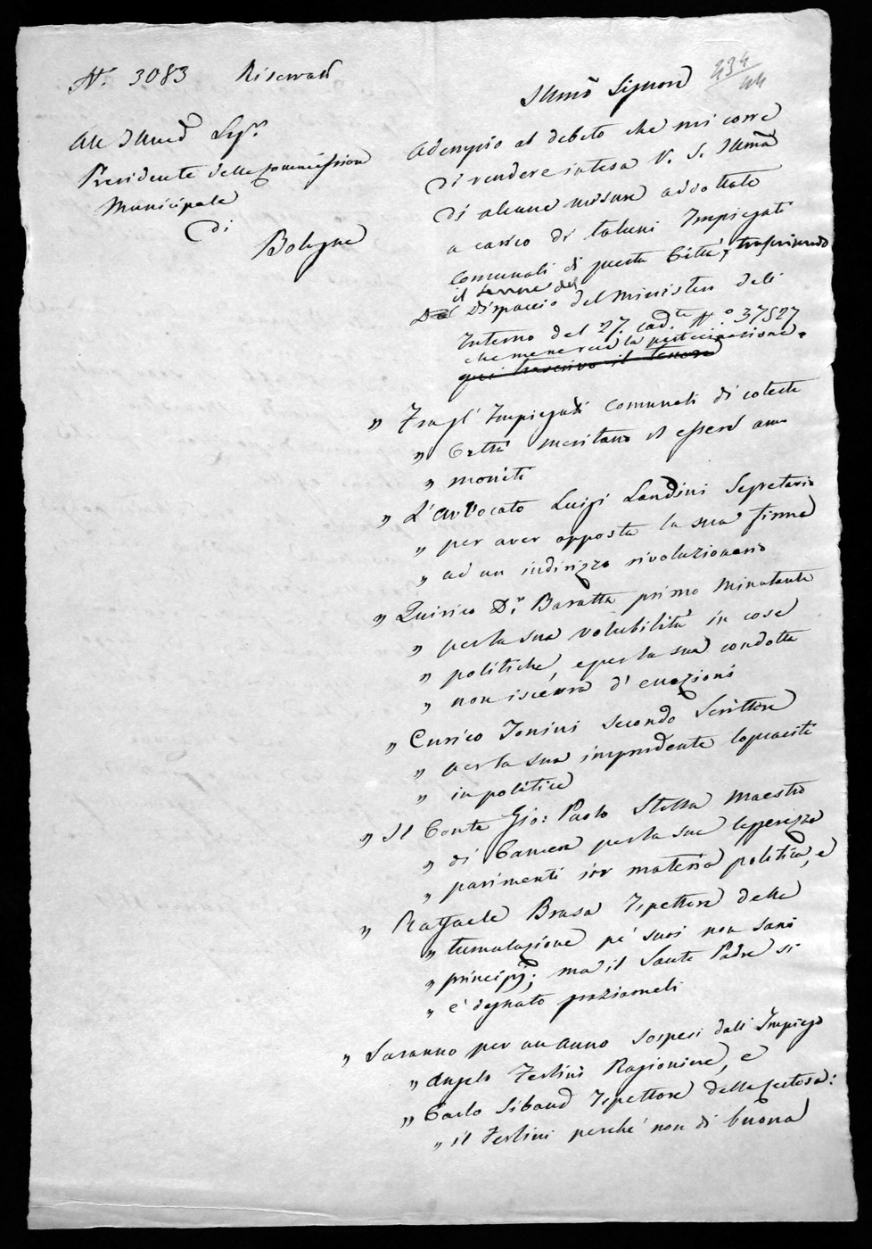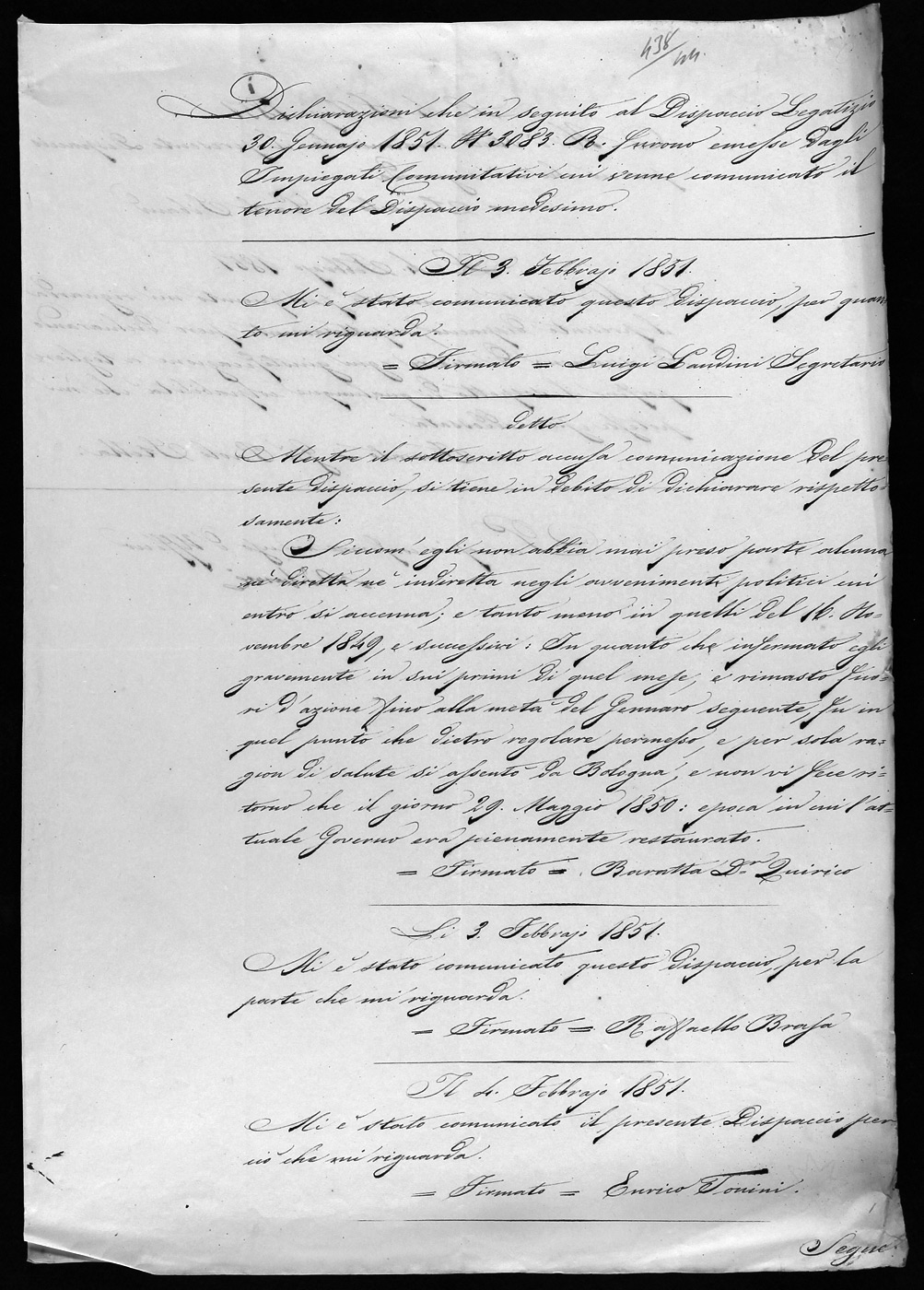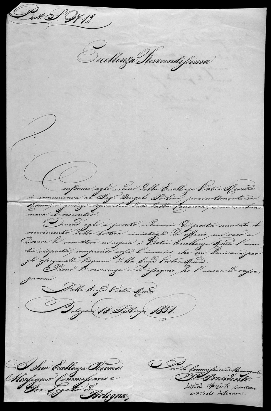 sono riuscito a rintracciare all' Archivio di Stato di Bologna il documento originale .