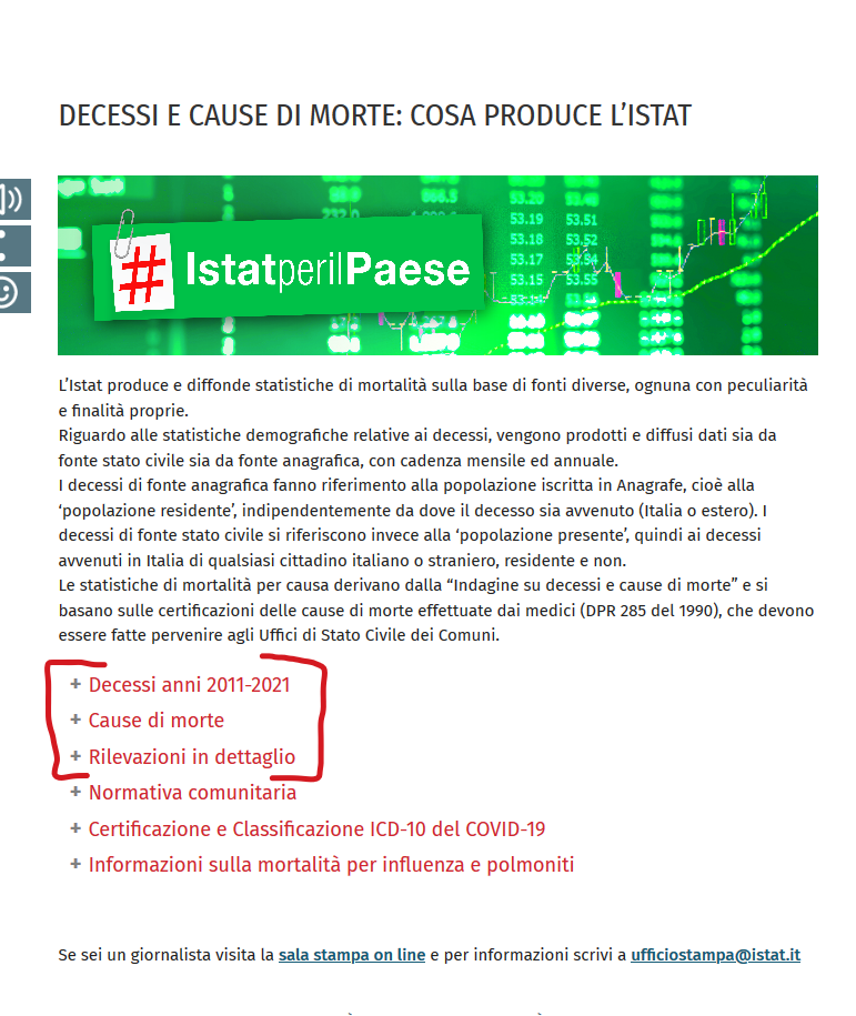 Secondo i dati contenuti nel tweet, entrambe le voci avrebbero subito una netta impennata nel corso dei tre anni, passando dai 21.500 casi del 2019 ai 98.100 del 2021 per quanto riguarda i decessi avvenuti nel sonno e dai 14.800 del 2019 ai 45.200 del 2021 per la voce «morti causate da malore improvviso». Secondo l’autore del tweet, la fonte dei dati sarebbe l’Istituto nazionale di statistica (Istat).