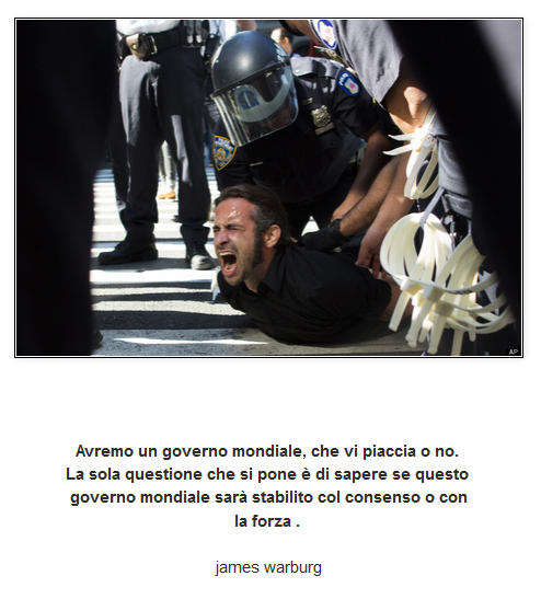 In questo scenario appena delineato si sta chiudendo il cappio sulle nazioni,e in America si sta vedendo in forma ancora di test,la dittatura che le elite globaliste vogliono imporre all'umanità,il loro nuovo ordine mondiale.