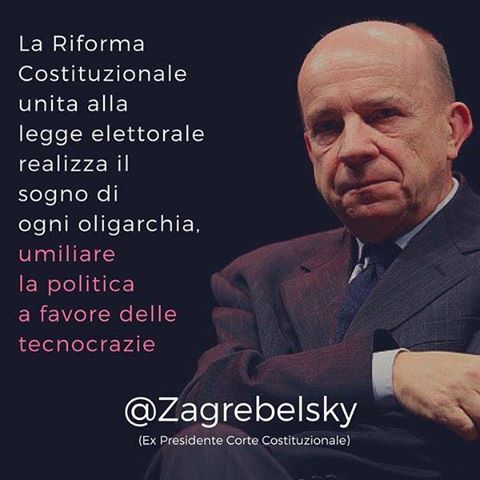 “Sì! I difensori sono sovranisti. L’UE non è neanche uno stato federale, ma solo un canale a trazione tedesca. Difendere, salvare la sovranità e le peculiarità delle Nazioni è d’obbligo. Lo Stato nazionale e le identità non sono da considerare un ferrovecchio inutile, anzi. Tra l’altro il Senato che riceverà ordini non sarà eletto, ma designato sempre dall’alto. Il piano si compierebbe perfettamente”. [...]»