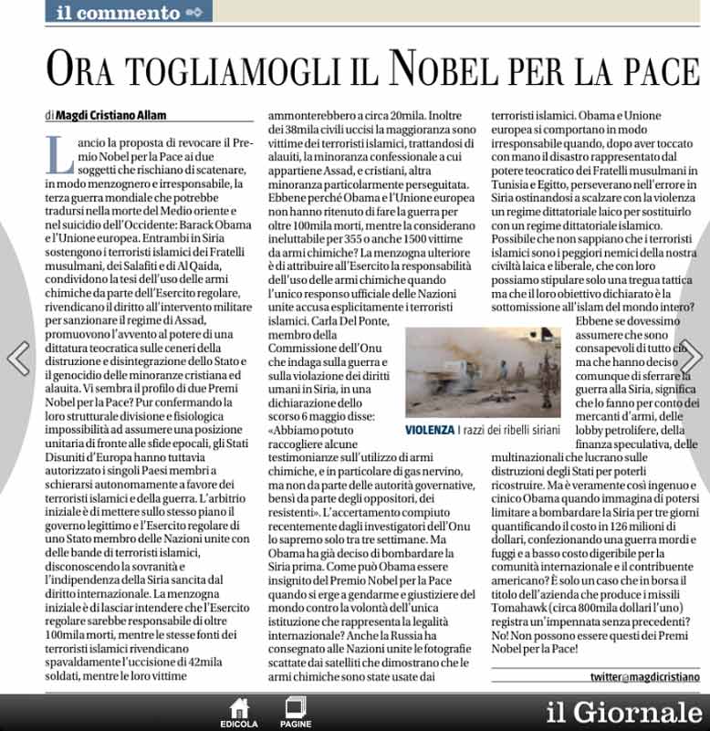 NON DITE A OBAMA CHI C’E’ DIETRO GLI ATTACCHI CHIMICI SIRIANI