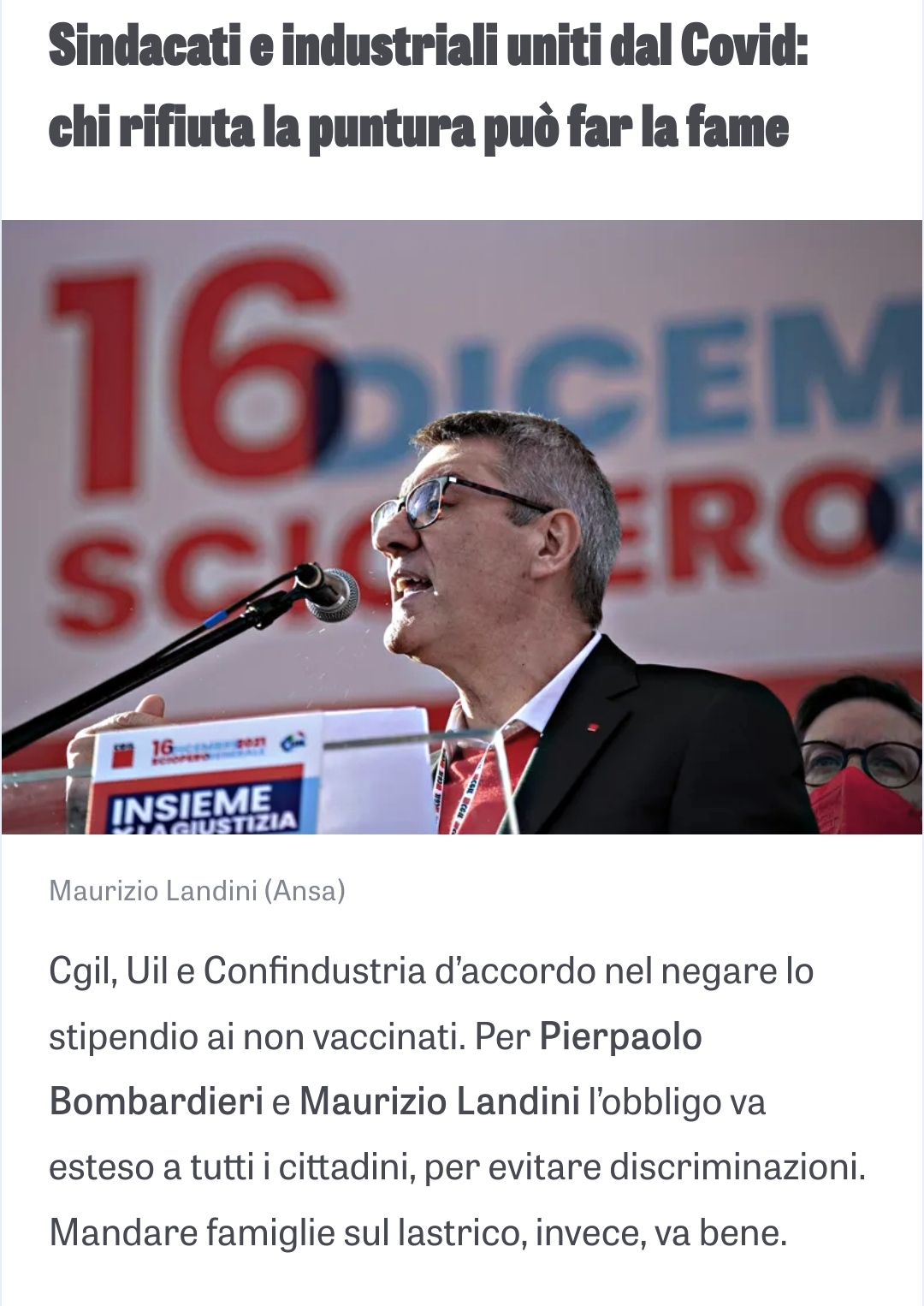 Il vaccino ha del miracoloso: ha posto fine alla lotta di classe! Il "nemico" ora è solo uno: il novass!