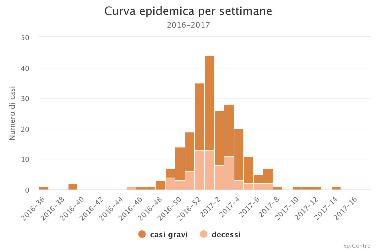 Questo il grafico della stagione 206/17 - casi accertati: