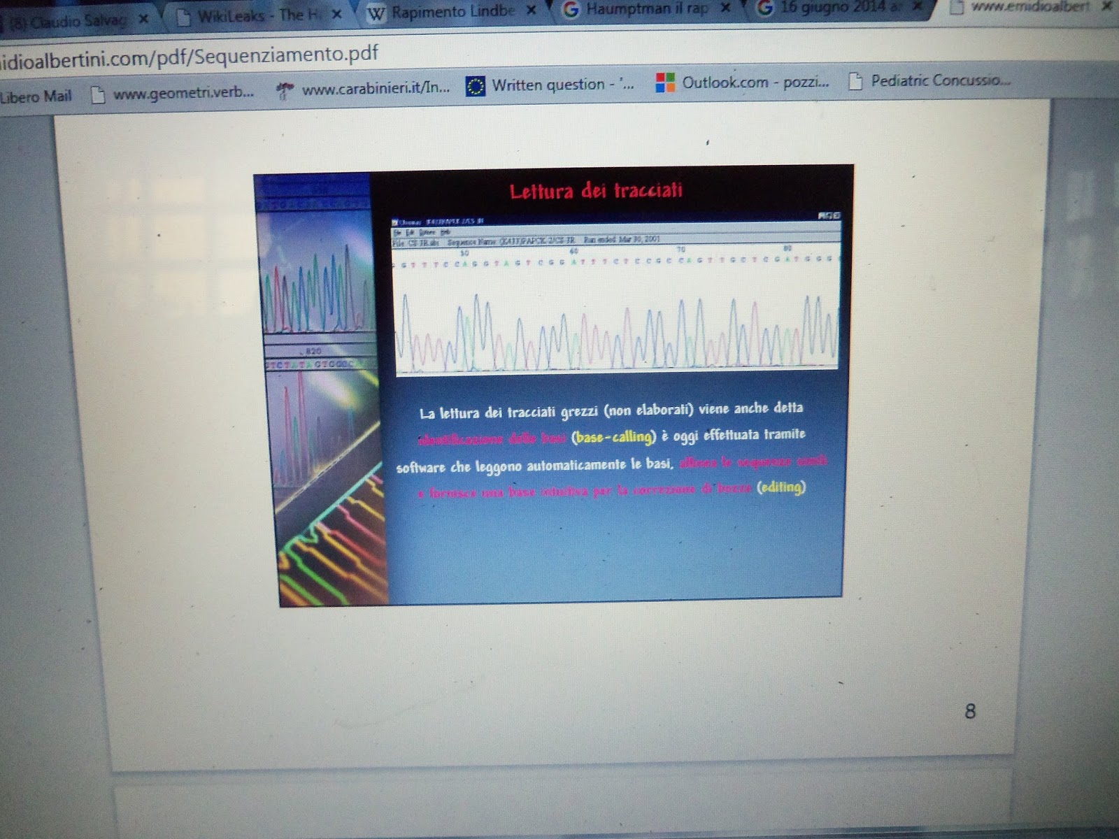 http://www.emidioalbertini.com/pdf/Sequenziamento.pdfDa questi elementi, vi potrete rendere conto di quale LOSCO E CRIMINALE RIMANEGGIAMENTO dei dati, può essere stata oggetto la traccia chiamata Ignoto 1 e..a questo punto, forse anche le altre!!!