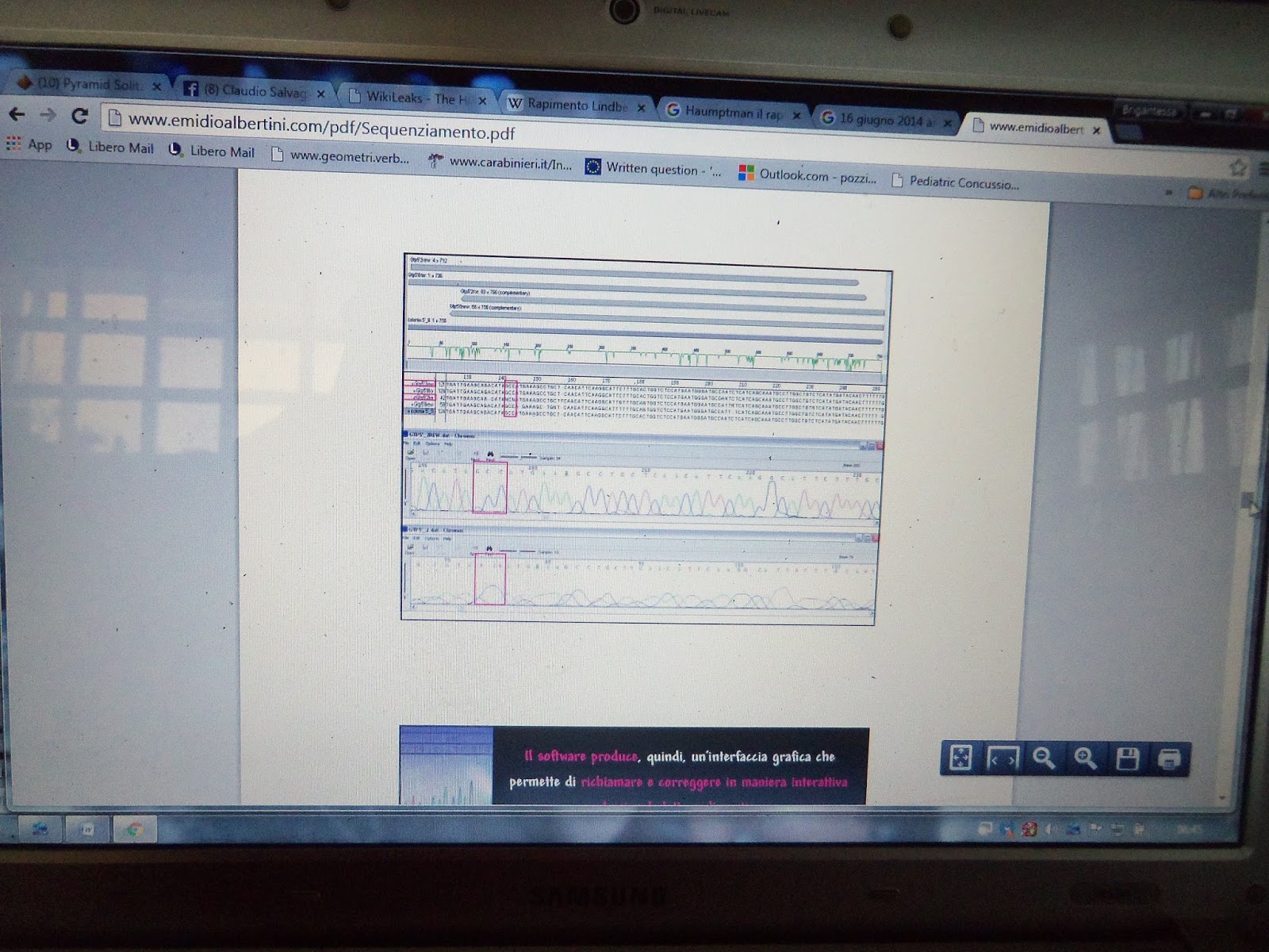 Ecco, già solo questi pochi rilievi dovrebbero bastare a scarcerare un INNOCENTE!!!! Ma per capire, è necessario fare riferimento alle procedure con cui vengono elaborate le tracce. IL TUTTO AVVIENE TRAMITE SOFTWARE...e di conseguenza...in tali software ci si può infilare, volontariamente o in modo criminale, per cambiare sequenze, alterare dati, cancellare o aggiungere. Di seguito pubblico alcune delle foto ricavate da una splendida spiegazione che troverete INTEGRALMENTE qui : http://www.emidioalbertini.com/pdf/Sequenziamento.pdf