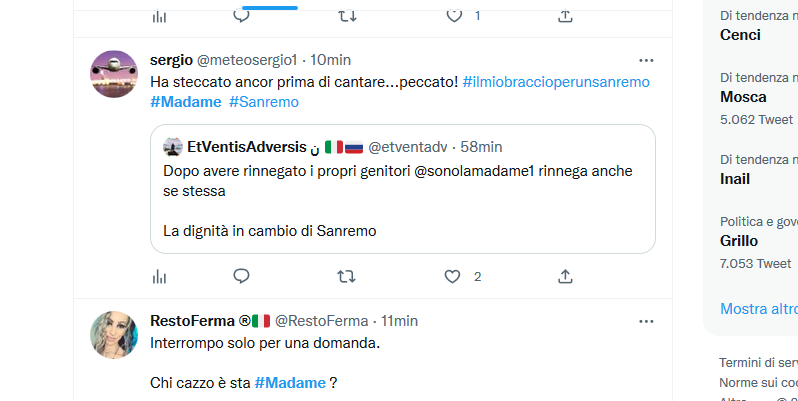 https://notizie.virgilio.it/madame-inda ... ri-1553297Madame rompe il silenzio