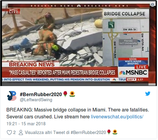 Un ponte pedonale è crollato in Florida: si parla di un gran numero di feriti e vittime, segnala il canale televisivo locale WTVJ.