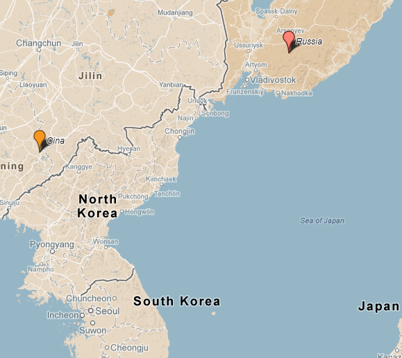Tutti sanno che la Corea del Nord confina con la Cina, meno noto e' che vi e' un tratto di territorio in comune con la Russia. La città di Vladivostok, che ospita ancora oggi laflotta pacifica dei Russi, e' soli 130 chilometri dal confine.