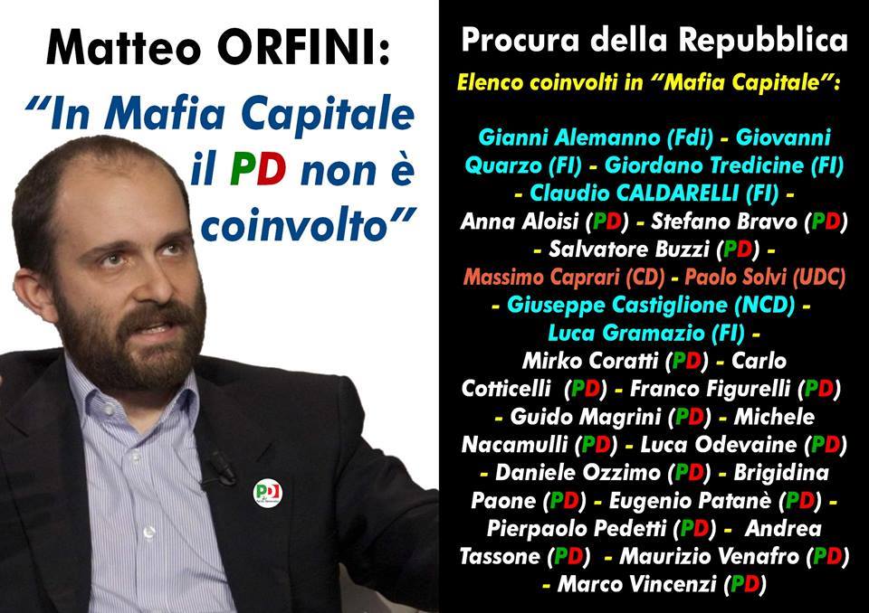 Vediamo quanto la realtà corrisponde alle parole dei vertici democratici e del sindaco. Il chirurgo sta cacciando tutti ma fino all’arresto in Aula Giulio Cesare sedeva l’ex presidente dell'Assemblea Capitolina, Mirko Coratti, ringraziato anche pubblicamente per l’ottima gestione che portò ad una rapida approvazione del primo bilancio dell’attuale consiliatura. Gli stessi scranni ospitavano Pierpaolo Pedetti, mai rimosso dalla presidenza della Commissione Patrimonio e finito anche lui a Regina Coeli. Non era organico al Pd ma votava le delibere di maggioranza Massimo Caprari di Centro Democratico, colpito anche lui dal provvedimento di arresto. Durante la sua visita in Campidoglio, la vicesegretaria del Pd Debora Serrachiani, ha citato la sostituzione del capogruppo Francesco D’Ausilio, nominato in molte intercettazioni ma non indagato, come prova di rigore. La presidente del Friuli ha dimenticato di dire che è stato rimosso non per le ombre su di lui, ma perché aveva osato pestare i piedi del permalosissimo Marino commissionando un sondaggio che testimoniava, come se ce ne fosse bisogno, il gradimento al lumicino della Giunta. Giunta di cui fino a dicembre faceva parte, con delega alla Casa, Daniele Ozzimo, costretto alle dimissioni dalle indagini sul suo conto e ora agli arresti. Il quarto esponente del Pd colpito da ordinanza restrittiva è l’ex presidente del Municipio X Andrea Tassone e non è un’omonimia perché è lo stesso Tassone che il sindaco voleva a capo di una super giunta delle meraviglie per riportare la legalità a Ostia. Alla Regione Lazio le cose non vanno meglio; il potente capo di gabinetto di Nicola Zingaretti, Maurizio Venafro, ha rassegnato le dimissioni lo scorso marzo, dopo un’inchiesta su una gara d’appalto e coinvolto, secondo l’accusa, in uno scellerato patto tra maggioranza e opposizione per spartirsi l’appalto sul Recup, il centro unico di prenotazione, il più remunerativo di tutti. Dimissioni anche per il capogruppo democratico Marco Vincenzi, tirato in ballo dall’inchiesta per alcuni emendamenti che avrebbe presentato. A dicembre si era invece autosospeso dal partito Eugenio Patanè, indagato nella prima tranche dell’inchiesta. Ancora al suo posto invece il segretario regionale Fabio Melilli, nonostante sia stato citato nelle carte tra i firmatari di un’interrogazione parlamentare, poi non presentata, su un appalto vinto da Buzzi ma bloccato dal Tar.
