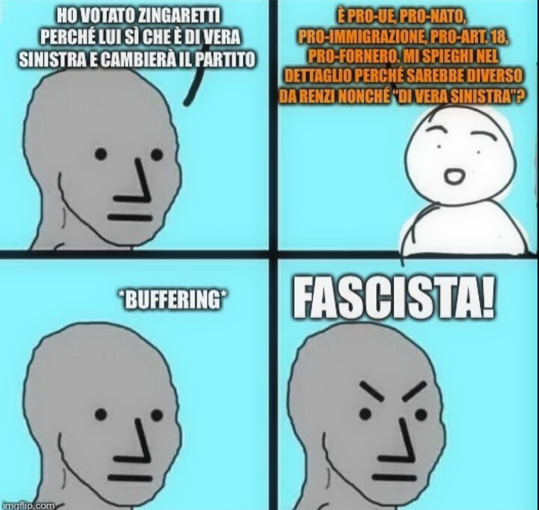 Morley ha scritto:L'emula-zione di re Mida affascina chiunque, anche i compagni di merenda paiono molto affamati di oro, quindi sono l'altra faccia del capitalismo, un solo mostro con due teste, creato dalla stessa entità sionista diabolica.