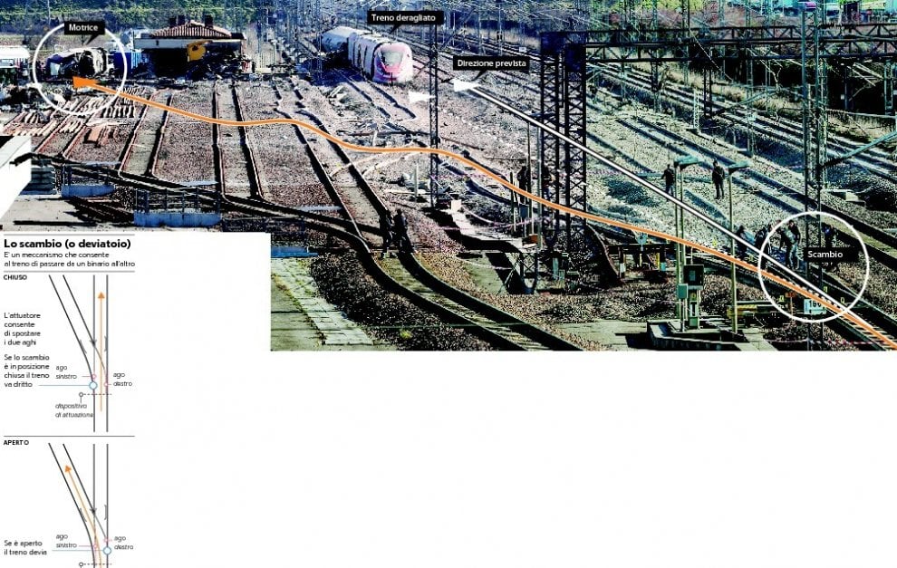 Lo scambio è aperto, si vede dalle immagini, non c'è alcun dubbio sulla causa dell'incidente. Verificare perchè fosse aperto e non chiuso è un altro paio di maniche e ci vorrà tempo. di certo non si stanno grattando le palle.
