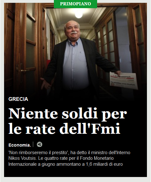Thethirdeye ha scritto:Grecia: ministro, non abbiamo i soldi per pagare le rate del prestito del Fmi