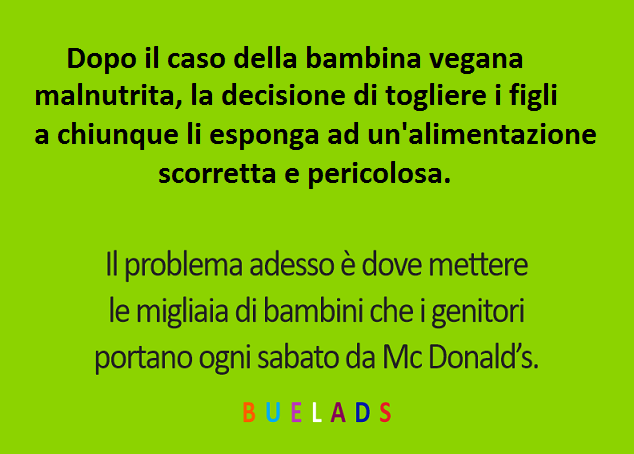 la dieta vegana sui bambini non puoi farla hanno bisogno di proteine animali, questi sono idioti e non sono i primi a cui succede. da adulto può avere anche benefici la dieta vegana ma da ambino no, quando sarebbe cresciuta avrebbe deciso le se essere vegana o no.