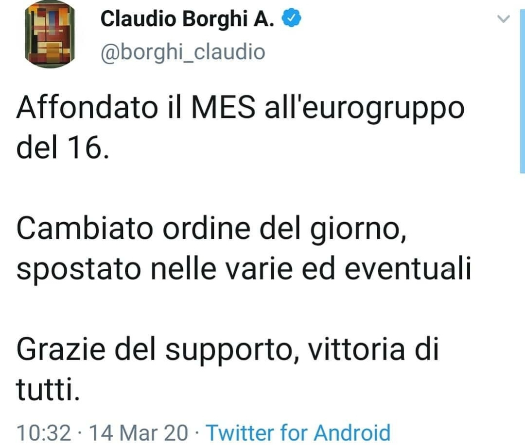 Il problema è che se noi adesso facciamo 500 miliardi di deficit, poi ci dobbiamo pagare sopra gli interessi altissimi (che la Germania non ha), senza contare che dopo l'emergenza avremo perso almeno 10 punti di Pil, questo porterà le agenzie di rating a declassarci a livello "junk", e non potremo più vendere tds. Il che significa default. Questo è un controsenso, visto che si sa che l’austerità ammazza i consumi.