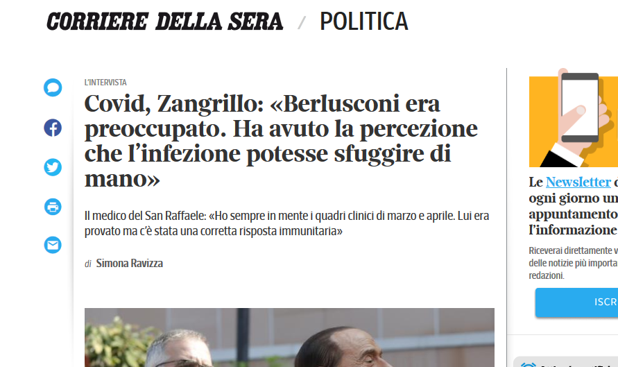 Tutto può essere, sta di fatto che un personaggio con gravi patologie preesistenti con un'età avanzatissima, esce nel giro di 1 settimana senza neanche essere intubato, qualcosa di strano c'è.