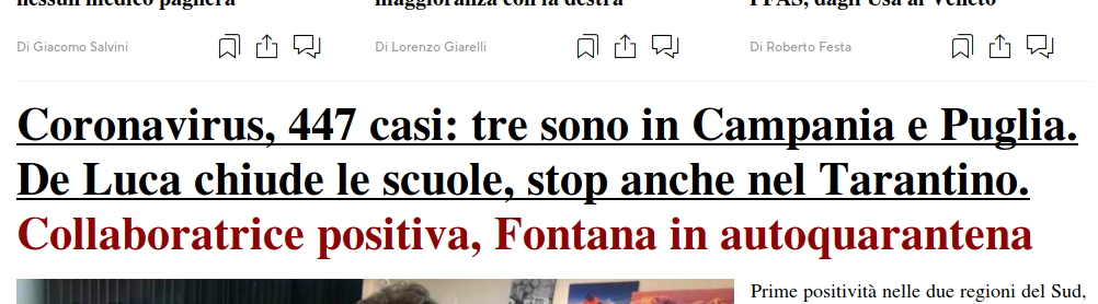 tra l'altro, giusto per dare una precisatina ai numeri, sembra che in Iran -focolaio NON contenibile al momento- la mortalità attuale sia vicina al 20% circa...il che ci porterebbe a presumere per chi REALMENTE sia stato concepito a tavolino "il giocattolo" e perché sia INVECE -evidente la minaccia indiretta- stato fatto partire da Wuan piuttosto che da altrove, magari NON identificabile, e chiaramente da chi...![]()