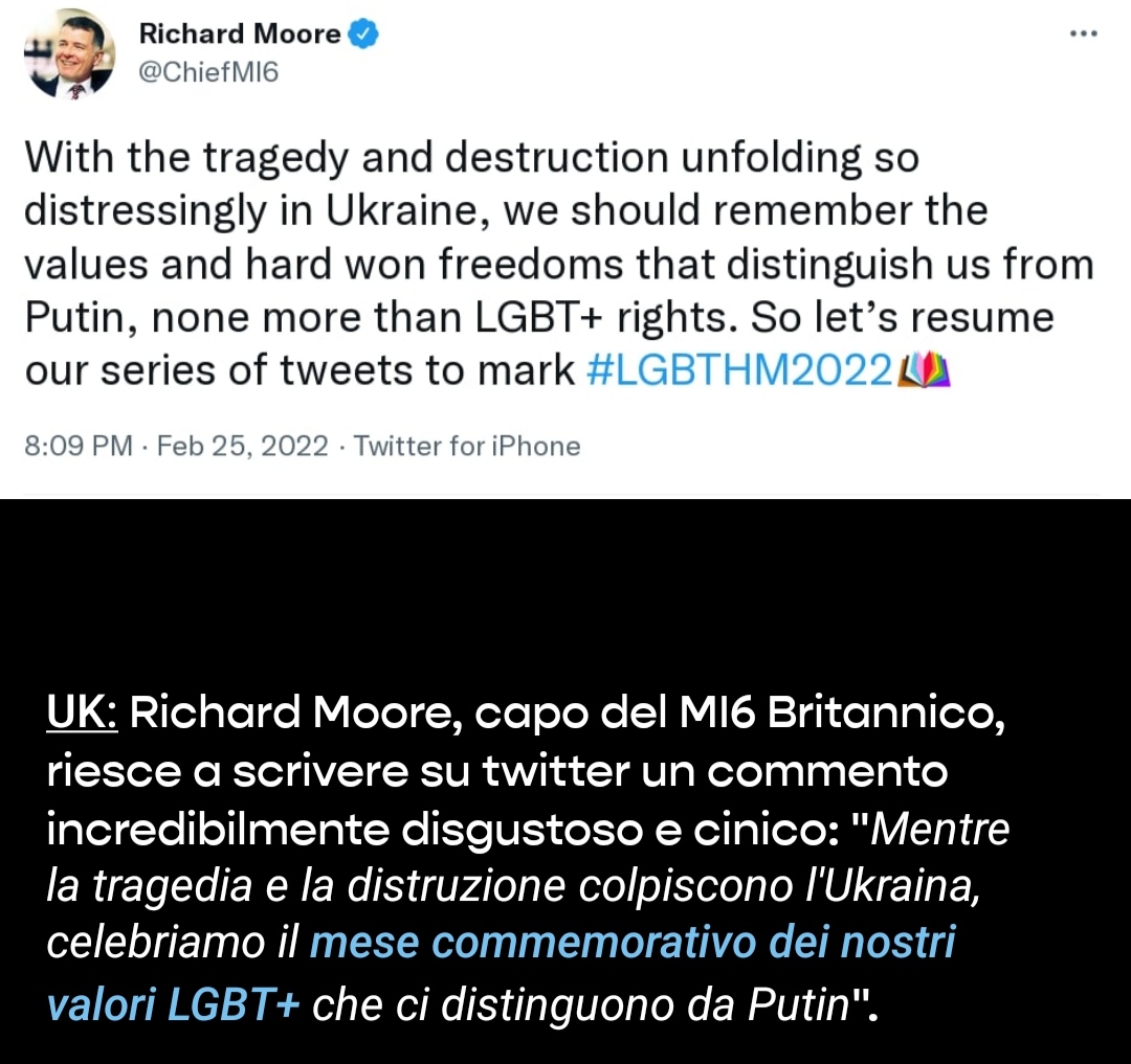 Ho notato anche che in tv chi muove timide critiche (fondate) alla Nato, è costretto a dire "premetto che l'invasione sia da condannare"... Alla maggioranza sembra che questa guerra sia scoppiata qualche giorno fa SENZA MOTIVO, se non per la follia di Putin.