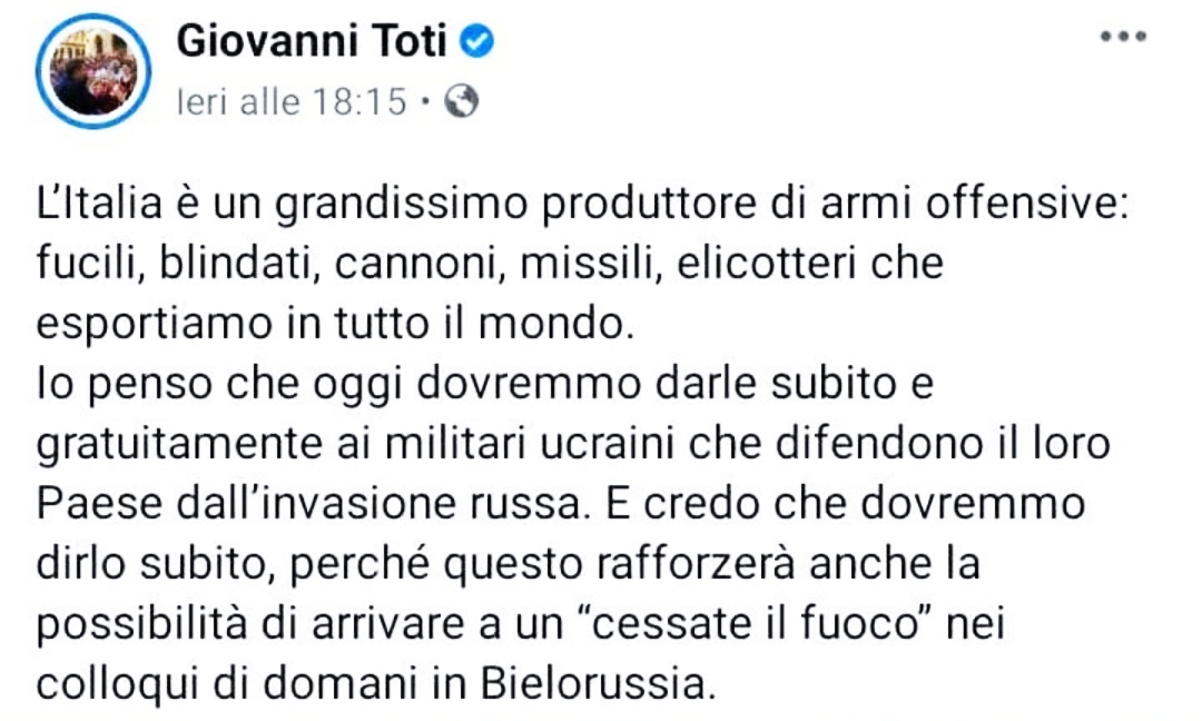 L'intervento è: "Per un' Ucraina libera e neutrale" [:305] [:246]