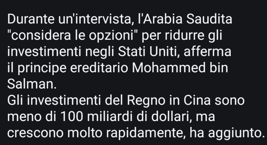 Ecco, se Putin volesse fare un dono all'umanità, potrebbe levare di torno quel cancro vivente di Bin Salman... Ma figurati.....