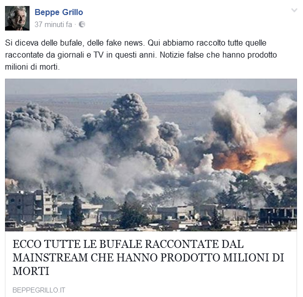 Ora, considerando la costante e instancabile manipolazione che i mezzi d’informazione esercitano da sempre sull’opinione pubblica attraverso menzogne, falsificazioni dei fatti, mezze verità e fantasie, fa davvero sorridere che si identifichi nelle bufale – indubitabilmente presenti in rete – un rischio per la democrazia. Il fatto è che fino a poco tempo fa il fenomeno del cosiddetto ‘complottismo’ era confinato ad una nicchia di persone che iniziavano a fiutare odore di marcio proveniente dai media e cercavano quindi – visti i mezzi messi a disposizione dalla rete – di capire meglio certe situazioni quando i conti proprio non tornavano.