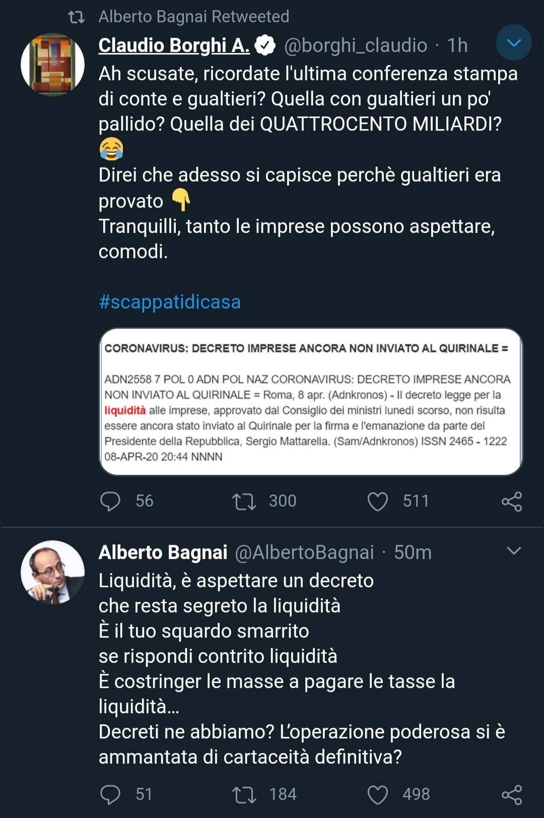 Ma figurati se hanno 400 miliardi, hanno voluto imitare i proclami di altri paesi che i soldi li hanno veramente.