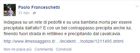 "Bisceglia era esperto in reati ambientali ed era titolare delle indagini sul caso della piccola Fortuna precipitata da un palazzo al Parco Verde di Caivano e sulla relativa rete di pedofili emersa dalla tragedia."