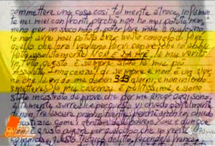 'Quarto Grado' mostra la lettera del muratore ai suoi legali