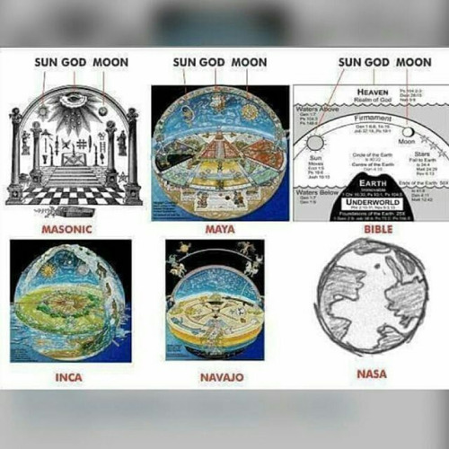 ...the earth is an enclosed plane, centered at the North Pole and bounded along its outward edge by a wall of ice, with the sun, moon, planets, and stars only a few hundred miles above the surface of the earth.