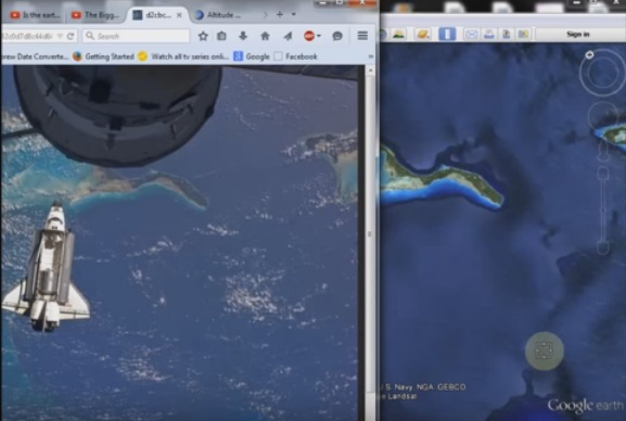 Veduta delle isole Bahamas dallo space shuttle confrontato con google earth