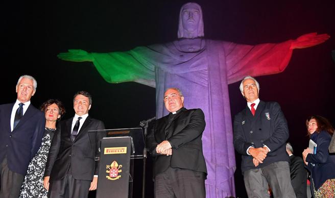 Il Presidente del Consiglio alla cerimonia di illuminazione del Cristo Redentore a Rio: «Tricolore sul pennone dei Giochi come qui su Cristo Redentore» ha detto