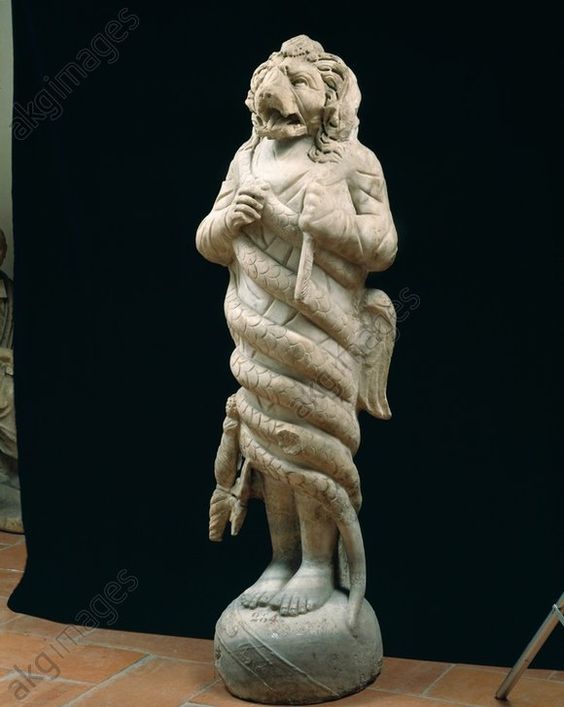 Pettazzoni trova inteseressanti analogie ( 4 braccia et altro ) tra il bes panteo e l' aion di Castel Gandolfo , Villa barberini , II SEC.